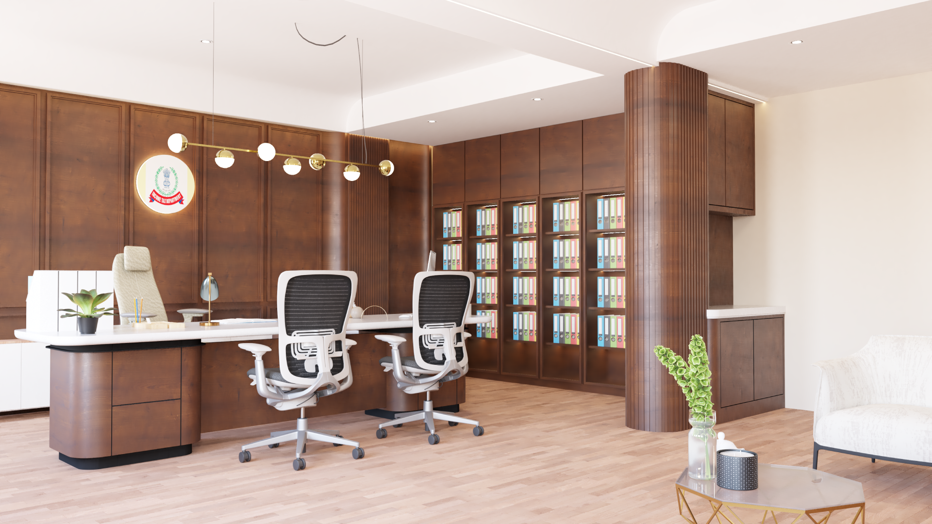 Defined by clean lines, warm textures, and balanced lighting, the space delivers a calm yet professional atmosphere. Through photoreal 3D interior renderings and precise architectural visualization, every element—from ceiling design and lighting layout to ergonomic seating and material selection—was developed with intention to enhance user comfort and interaction.