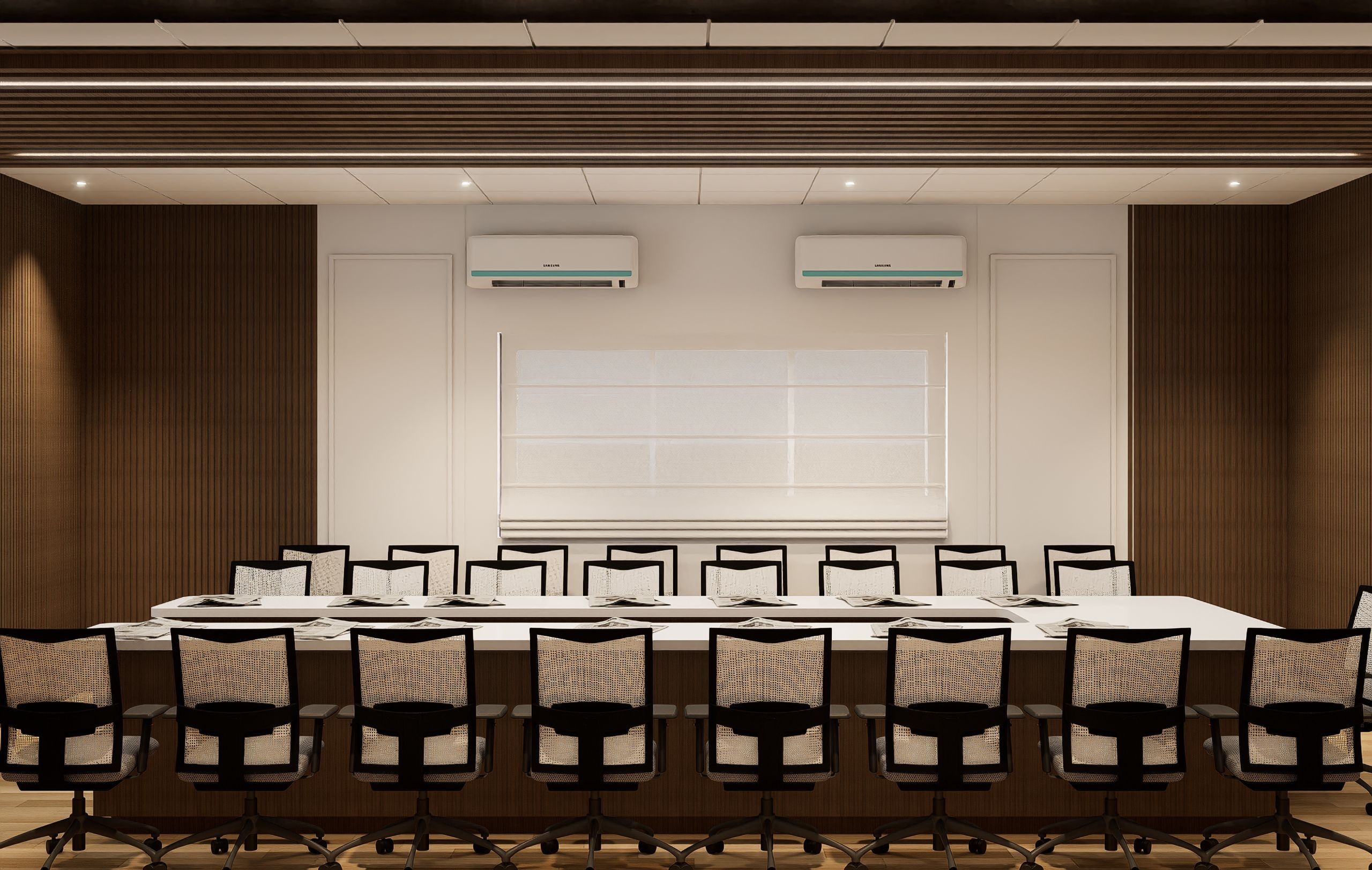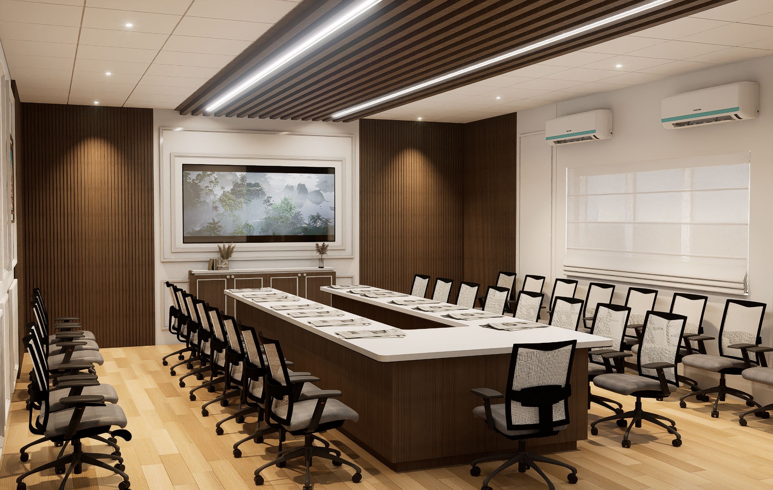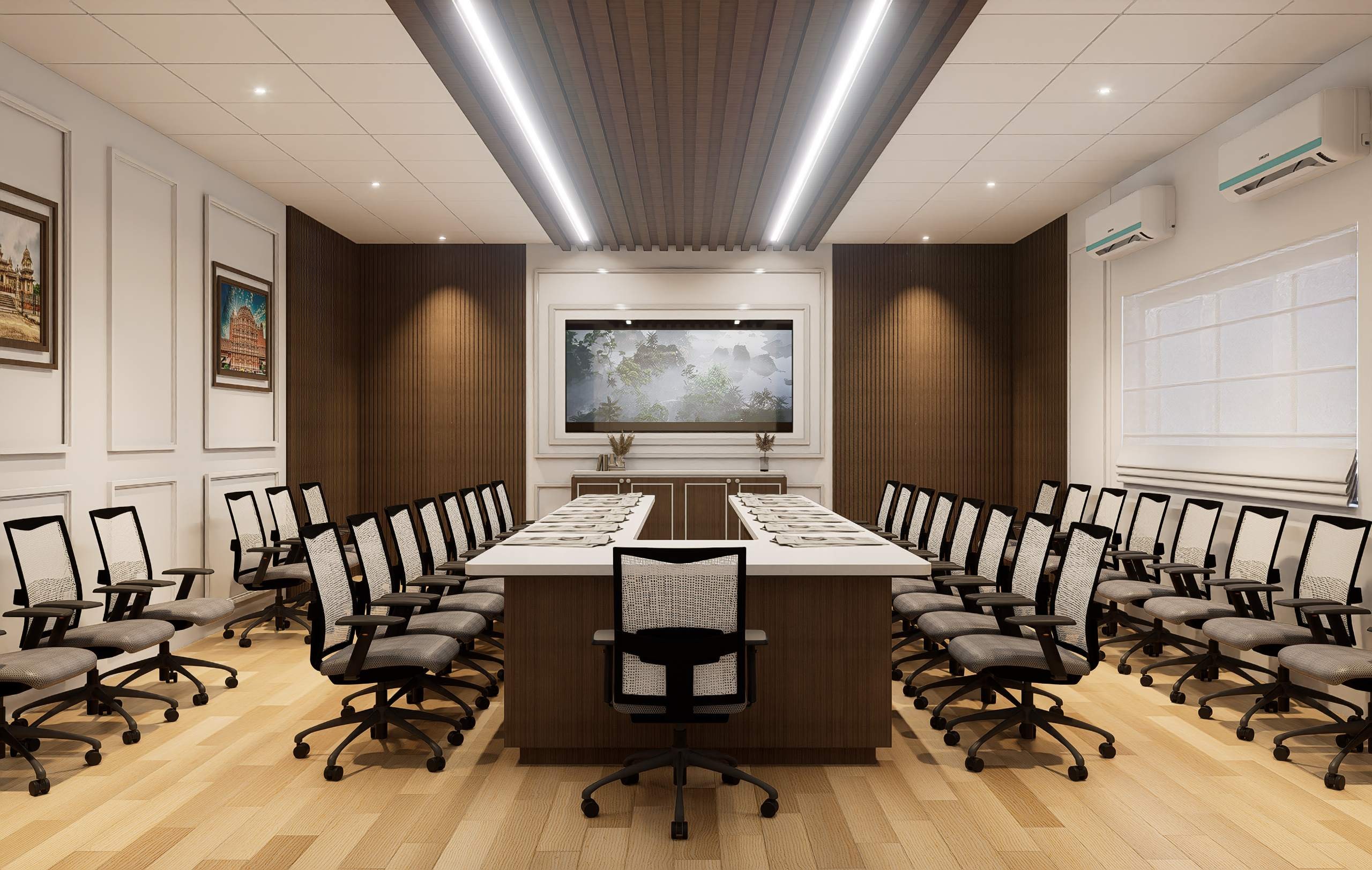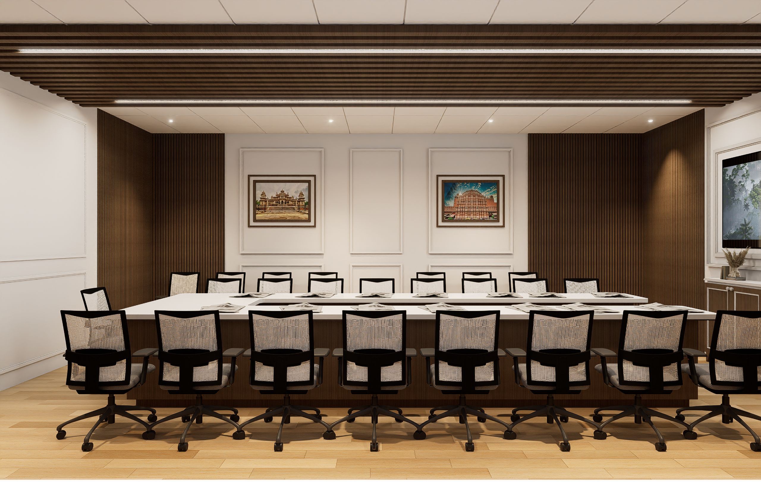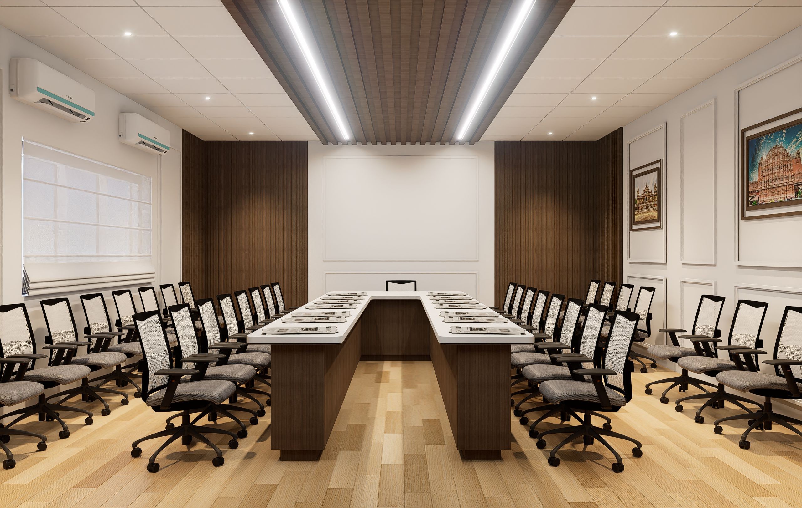 GOVERNMENT OFFICE CONFERENCE ROOM – A SPACE FOR IMPACTFUL DECISIONS is a thoughtfully designed modern meeting environment built to encourage clarity, collaboration, and leadership. Designed for a government facility in Rajasthan, this conference room interior design merges contemporary aesthetics with high functionality to support serious discussions and powerful decision-making.