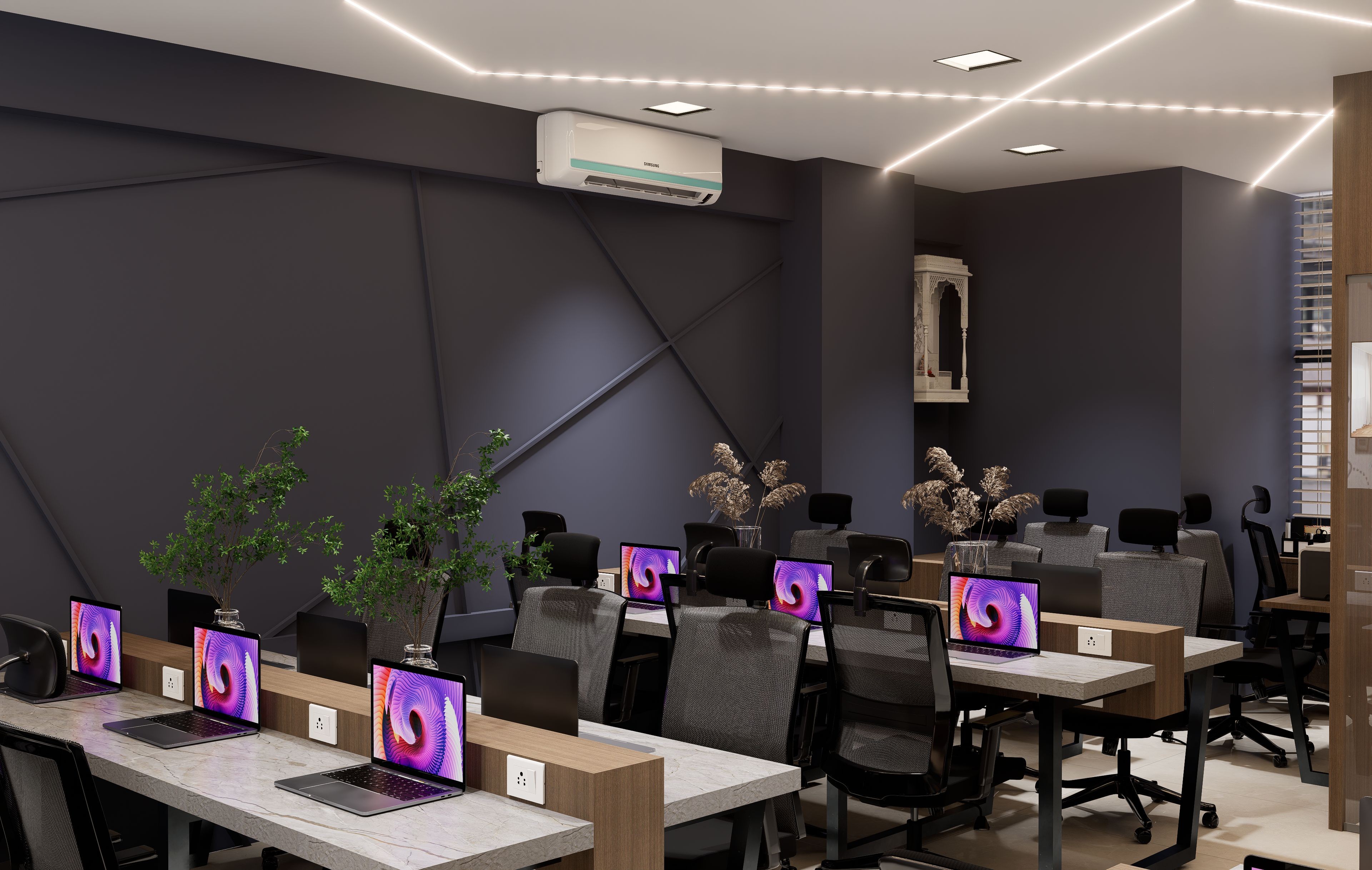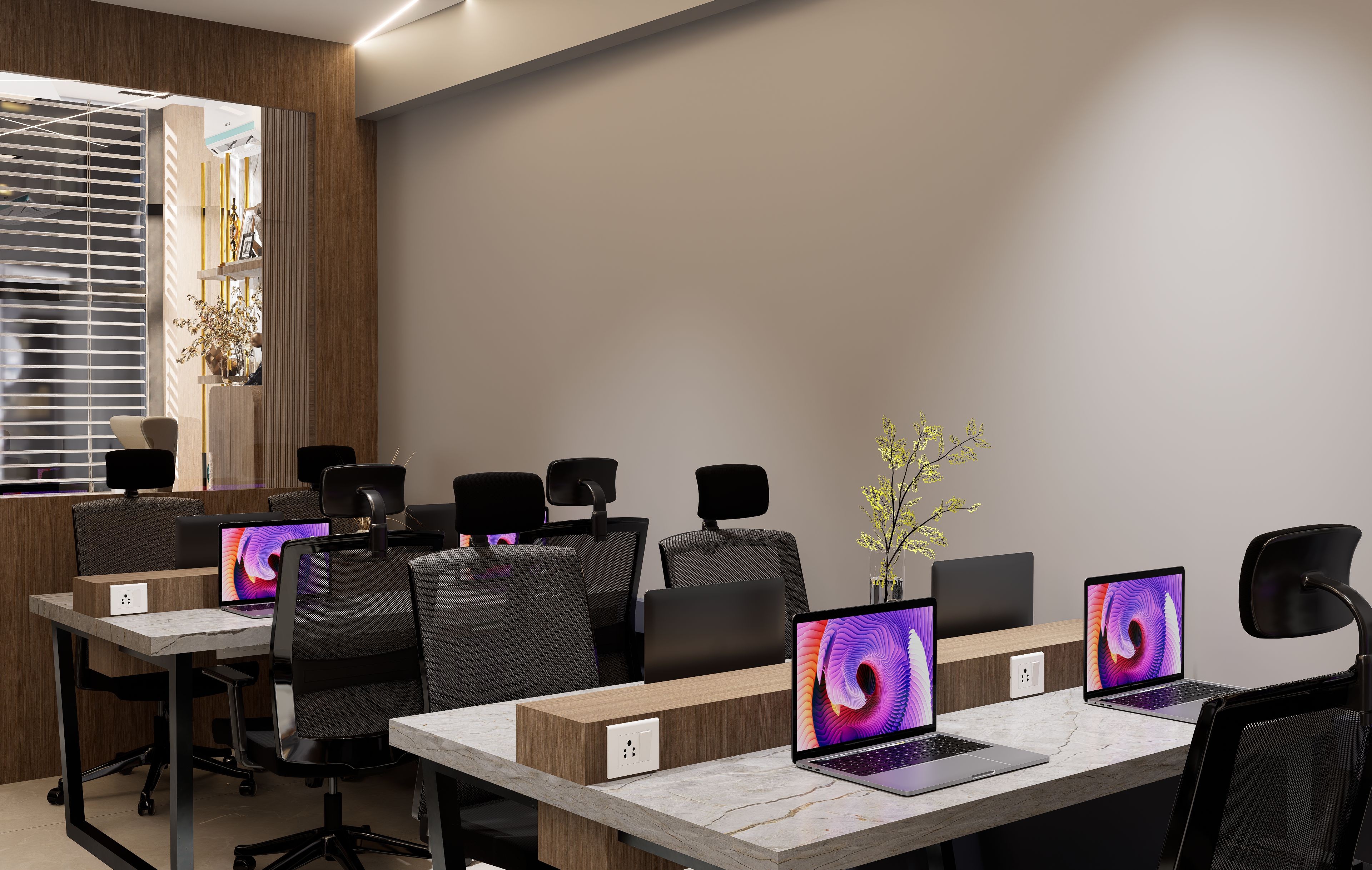 Defined by ergonomic layouts, vibrant aesthetic zones, and smart spatial planning, the environment fosters a culture of productivity and wellbeing. Through photorealistic 3d rendering services and precise architectural visualization, every element—from the open-plan workstations and executive cabins to the breakout zones—was developed with an intention to enhance workflow and employee satisfaction.